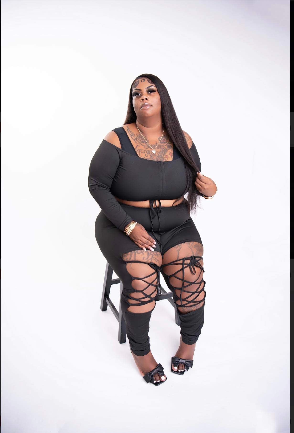 Denim tear skirt set